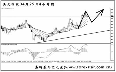 上周五美國證券交易委員會起訴高盛的事件對金融市場造成的進一步影響短暫,本周市場再度將焦點放在希臘債務危機問題上。與歐洲金融市場愈發(fā)動蕩形成鮮明對比的是,美國經(jīng)濟復蘇前景更為樂觀,美元因此有望再創(chuàng)短線新高。 歐盟統(tǒng)計局上調希臘預算缺口以及穆迪下調希臘主權債務評級的消息令希臘金融市場本周再度經(jīng)歷混亂不堪的局面。面對市場擔憂情緒所造成的借貸成本不斷上升的情形,希臘總理帕潘德里歐正式請求啟動歐盟/國際貨幣基金組織共同救助機制。接下來,歐盟、國際貨幣基金組織和歐洲央行將會對這一請求進行審核,之后待歐元區(qū)其他15個成員國批準之后,救助計劃中由歐元區(qū)承諾的300億歐元救助資金才能開始向希臘提供。此前,歐盟統(tǒng)計局公布的數(shù)據(jù)顯示,希臘2009年預算赤字占GDP比例高達13.6%,這較之前希臘政府預期的12.7%高出將近1個百分點。更令投資者感到絕望的是,鑒于一系列原因,歐盟統(tǒng)計局還表示,對希臘的財政數(shù)據(jù)的準確度持保留態(tài)度,不排除進一步上修的可能。另外,美國穆迪投資服務公司也下調希臘主權債務評級,并表示可能會進一步下調,原因在于希臘的借款成本可能最終遠超其之前的預期。穆迪將希臘主權債務的評級從“A2”下調至“A3”,較投機或“垃圾”級僅高四個級距,穆迪還將評級列入負面觀察名單。不過,市場人士仍對規(guī)模為450億歐元的援助機制存疑,因這可能無法解決希臘面臨的削減預算赤字的長期問題。 在歐洲金融市場愈發(fā)動蕩的背景下,美聯(lián)儲在結束為期兩日的會議后于北京時間4月29日凌晨宣布維持利率在0至0.25%區(qū)間不變,并再度重申利率將在較長時間內持于異常低位,但對經(jīng)濟復蘇和就業(yè)市場的言論更為樂觀。美聯(lián)儲稱,經(jīng)濟活動持續(xù)增強,就業(yè)市場開始改善。銀行借貸繼續(xù)收縮,但金融市場仍支持經(jīng)濟增長。對就業(yè)市場的描述較3月有所“改觀”,當時美聯(lián)儲只不過表示,就業(yè)市場正在“趨穩(wěn)”,但美聯(lián)儲重申雇主對增加人手仍在猶豫。美聯(lián)儲重申了市場密切留意的利率可能維持異常低點“一段長時間”的措辭,主因低通脹和高失業(yè)率。美聯(lián)儲重申在一段時間內通脹將可能保持溫和,因大量的資源閑置令成本壓力受限。美聯(lián)儲聯(lián)邦公開市場委員會以9:1的投票通過利率決定,堪薩斯城聯(lián)儲主席霍恩連續(xù)第三次在會議上持反對意見,他稱在較長時間內保持利率在異常低水平的承諾不再合理,認為這可能“造成未來的失衡”,在一段時間內保持低利率的承諾限制了美聯(lián)儲開始小幅升息的靈活性。美聯(lián)儲重申,委員會將密切關注經(jīng)濟前景,在必要時利用政策工具促進復蘇和價格穩(wěn)定。美聯(lián)儲稱,鑒于金融市場的功能性改善,除定期資產(chǎn)支持證券貸款工具以外已結束所有特殊流動性工具。 美元指數(shù)繼續(xù)沿日線圖的上升通道運行,目前中線道氏理論的最后一個顯著低點在80.00,此位置為美元指數(shù)上漲過程中的強支撐。MACD發(fā)出了大角度的頂背離信號,預示多頭動能有所減弱。美元指數(shù)有向下回探通道下沿的風險,但跌破的概率不大,后市再創(chuàng)新高為大概率事件。