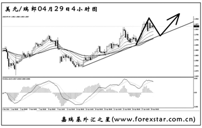 ▲美元兌瑞郎沿趨勢(shì)線緩步爬升,目前已經(jīng)接近了1.0900一線的前方高點(diǎn)阻力,能否突破此位置成為后市繼續(xù)上漲的關(guān)鍵。短線美元兌瑞郎上行力度較強(qiáng),圖中均線系統(tǒng)起到了較好的依托作用。預(yù)計(jì)美元兌瑞郎走勢(shì)還將有一定的反復(fù)性,后市將以探底回升的節(jié)奏運(yùn)行。