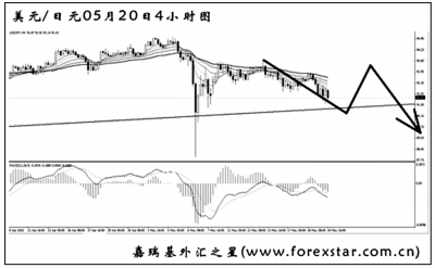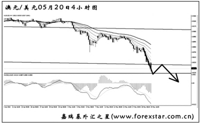 ▲英鎊兌美元下跌力度逐步加強,已經遠離了下降趨勢線。從支撐上看,英鎊的下跌空間尚廣,思路上應繼續做空。短線匯價的下跌動能有所減弱,英鎊有先向上發起回調的風險,但將在圖中均線系統的壓制下轉為下行,再度創出新低。