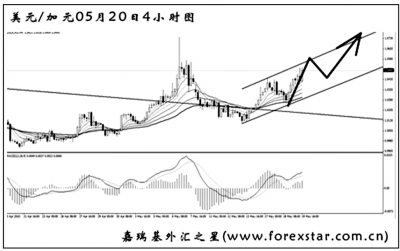 ▲美元兌加元將包含MACD底背離點的下降趨勢線升破后逐步反彈上行,4小時圖中客觀趨勢橫盤。短線匯價形成一個小的上升通道,匯價將沿此通道繼續上行。首先關注前波反彈高點1.0740的阻力作用,若升破,美元兌加元還將有更為顯著的上行走勢。 |