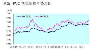 圖二 | 完善石化產業市場體系建設,轉變企業經營理念。PVC期貨上市,進一步完善了石化和塑料市場體系,推動了石化產業市場化進程和信息化水平。傳統上,PVC市場價格通常由生產企業和貿易商、加工商合同協商確定,生產廠商定價隨行就市,所形成的價格只是區域性價格,缺乏代表性和預測性。PVC期貨上市后,將從根本上改變我國PVC產業的經營模式,通過期貨市場的價格引導和風險規避作用,企業可以調整生產經營,進而引導整個行業合理進行資源配置。 期現價格走勢趨同,相關性較高。PVC期貨上市以來,期貨價格與現貨價格方向一致,變化幅度大體相當,體現出良好的趨同性(見圖2)。 據測算,期現貨價格相關性高達0.83,表明PVC期貨市場與現貨市場高度相關,期貨市場能夠有效地反映現貨市場的走勢。同時,期貨價格趨勢超前于現貨價格,為現貨生產和流通提供了價格信號,合理引導生產和消費,受到現貨貿易商和下游制品企業的廣泛關注。 為相關企業提供了規避風險的有效渠道,保障行業穩定發展。通過PVC期貨,為企業提供了可預期的未來價格,同時企業可以通過買賣與現貨部位相反的期貨合約,將銷售或購買價格事先鎖定在相對合理價位,規避現貨價格波動風險,保證收益。PVC上市以來,已有近600家現貨企業參與了期貨交易。在參與模式上,這些現貨企業部分根據期現價差開展套利交易,部分已開始利用期貨市場進行套保交易,獲得較好的避險效果。 為產業發展提供強有力的金融支持,節約交易成本。國內PVC行業已經進入高成本支撐時代。PVC期貨市場建立后,在嚴格的信用保證體系下,金融機構可以對企業提供倉單質押等業務,提高相關產業的資金運轉能力,生產企業可以利用部分產成品,將其注冊成標準倉單,換回70%—80%的期貨交易保證金;部分企業還將期貨市場作為現貨交易的第二市場,以付出少量期貨保證金的代價,銷售或購買產品,提高了資金利用率。 實行推薦品牌交割制度,助推行業建立品牌價值。PVC期貨采用的是推薦品牌交割制度,如果投資者可以提供生產廠家出具的質檢證書及質量承諾書,則推薦廠家生產的推薦品牌產品可實現免檢注冊倉單,從而簡化交割程序,降低交割成本。根據市場認可度、生產規模和質量控制水平等,PVC目前推薦廠家品牌有9個,在交割品牌制度的影響下,這些品牌產品成為市場上的搶手貨。 有助于形成國際PVC市場的中國價格。爭取國際PVC定價權具有重大的現實意義,有助于提升我國企業在國際競爭中的地位。我國是世界上最大的合成樹脂進口國,消費量全球第二,其中PVC消費量居全球首位,是國際樹脂消費年均增長速度最快的國家。此外,我國樹脂生產廠家適度集中,下游塑料制品生產廠家眾多,且存在大量的各級經銷商,現貨貿易活躍,具有發展期貨市場,形成PVC中國價格的現貨基礎。近兩年,得益于國內巨大的市場需求,大商所已成為全球最大的塑料期貨市場,期貨價格開始為國際市場所關注。隨市場規模的進一步擴大,將發展成為影響世界塑料產品標準與價格的定價中心和交易中心。 |