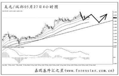 ▲美元兌瑞郎短線放慢了上漲的腳步,小幅下跌調整,圖中均線系統依托匯價。從周線圖上看,最近4周有上漲動能逐漸減弱的跡象,后市有向上升趨勢線發起回調的欲望,支撐在1.1400至1.1450一線。只要此趨勢線不跌破,后市美元兌瑞郎仍有上沖的動能。
