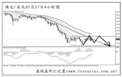 ▲澳元兌美元在經過了半個多月的瘋狂下跌走勢之后,現在進入到調整期。4小時圖構筑出一個矩形下跌中繼,同時匯價受制于下降趨勢線的阻力,后市澳元繼續下跌的希望很大。若考慮雙底反轉,必須等待0.8360的頸線被有效升破。方向上更傾向于做空澳元。