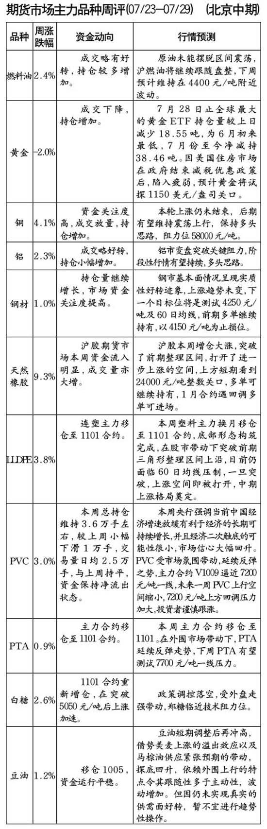 期貨市場主力品種周評[2010.07.09-2010.07.15]