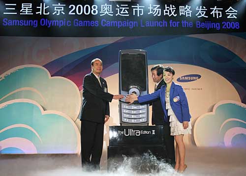 2007年6月6日,奧運會無線通信領域全球合作伙伴三星電子發布了北京2008年奧運會市場戰略,強勢推出三星E848、P318和U308三款奧運手機,同時宣布奧運會體操冠軍劉璇成為三星奧運形象大使。劉璇將代言三星北京2008年奧運會所有市場營銷活動。