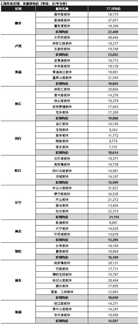 2007年12月,中原(上海)領先指數為152點,樣本成交均價17197元/平方米,環比上揚1.27%。另外根據中原12月的成交統計數據顯示,12月住宅買賣成交量繼續下滑,比11月減少了20%左右。