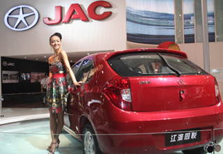 圖為成都車展推出的紅色江淮“同悅”。新華社記者:余曉潔 攝