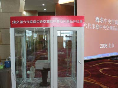 日前,海爾中央空調(diào)在北京舉辦了海爾第六代家庭中央空調(diào)除甲醛系列新品上市會,此次海爾推出的第六代家庭中央空調(diào)除甲醛系列新品,不但延續(xù)了從產(chǎn)品到方案全程節(jié)能的優(yōu)勢,更為突出的是,該系列新品能夠短時間內(nèi)迅速降低室內(nèi)甲醛含量,改善空氣質(zhì)量,適合中國消費者冬季“關(guān)門閉戶”的生活習(xí)慣,保證室內(nèi)空氣健康,為用戶營造溫馨的居家環(huán)境。圖為會議現(xiàn)場擺放的除甲醛新品體驗屋。 |