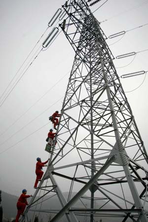日前,安徽省淮北供電公司員工在鳳凰山上對輸電線路進行全面技術改造,確保冬季電網運行安全。