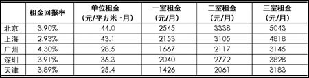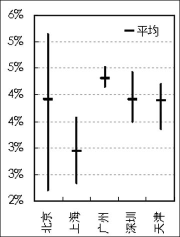 上海租金回報率在五城市中最低,在2008年3月時,這一指標滑落至3%以下,目前僅2.93%。