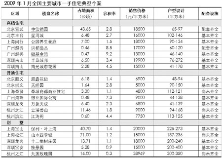 2009年1月全國主要城市一手住宅典型個案