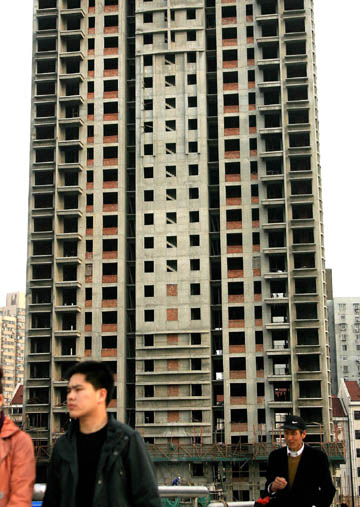 3月17日,行人從上海市江蘇路旁一正在建設中的住宅商品房前經過。 易居中國3月16日的最新統計數據顯示,3月第二周(3月9日至3月15日),上海市共成交商品住宅32.38萬平方米,環比大幅上升38.3%,這是上海樓市自2007年底受宏觀調控下滑以來的近70周新高。新華社記者:陳飛