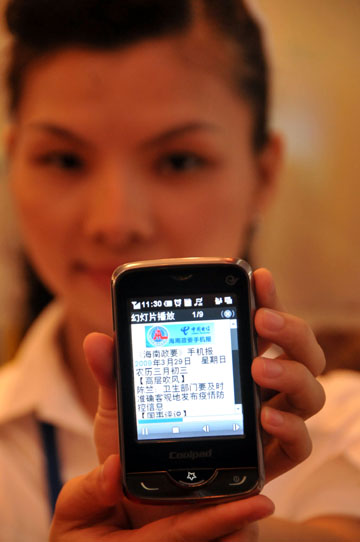 日前,中國電信海南公司3G試商用發布會在海南省海口、三亞、瓊海、儋州四市同時進行,標志著海南3G業務正式啟動,海南首批近百名3G用戶誕生。 自2009年1月7日國家正式發放3G牌照以來,海南電信經過近三個月的努力使海南的3G網絡基本建成并具備了試商用條件。到目前為止,海南電信3G網絡共投入建設資金近六億元,無線寬帶網絡已覆蓋到全省18個市縣的主要城區,東線高速已全程覆蓋,預計到今年5月中旬,3G網絡將覆蓋海南省所有鄉鎮。圖為工作人員展示手機3G業務中的“海南政要手機報”。