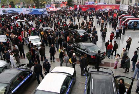 5月1日,在吉林市舉辦的汽車文化博覽會上,參觀者摩肩接踵。當日,為期三天的汽車文化博覽會在吉林市世紀廣場拉開帷幕,來自國內外的眾多暢銷品牌車參展,吸引了數萬市民前來參觀和選購。新華計發