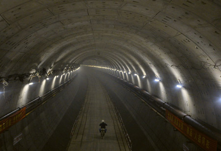 中國鐵建十四局集團承建的國家“863”計劃的科技示范工程——南京長江隧道左線將于5月20日貫通。南京長江隧道工程位于南京長江大橋和長江三橋之間,它南起南京市主城區的濱江快速路,北至江北收費廣場連接線,設計為雙向6車道,行車時速80公里,工程總投資約33億元人民幣,其左線隧道長3022米。 新華社記者 邢廣利 攝