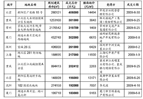 ■重點城市土地成交樓面地價排價榜(2009年1至6月)