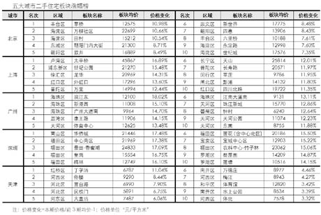 ■五大城市二手住宅板塊漲幅榜(2009年6月)