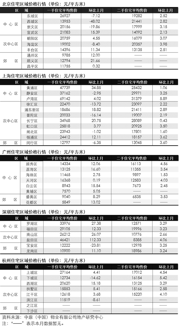 在價格強勁上漲的帶動下,各地二手住宅租金有所上漲價,但漲幅不及價格上漲速度,因而租金回報率不斷下降,屢創新低。目前,五大城市租金回報率均低于同期個人商業住宅貸款基準利率,以租養貨均入不敷出。