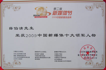 華聲在線董事長薛伯清獲評“2009中國新媒體十大領軍人物”