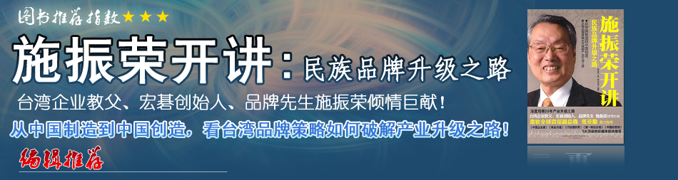 創造世界一流的民族品牌已是全球華人共同的期望。施振榮締造的宏碁及臺灣各品牌的成功證明了,民族品牌實現升級絕非虛無縹緲的理想。 |