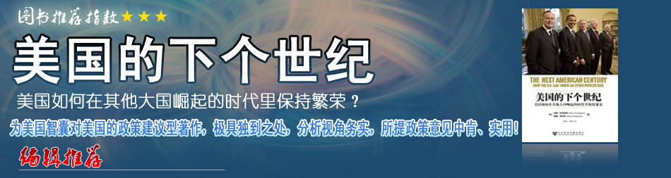 正當(dāng)美國(guó)以‘我們對(duì)抗它們’的眼光來(lái)看世界的時(shí)候,《美國(guó)的下個(gè)世紀(jì)》對(duì)此提出了一種出人意料的精彩糾正。它建議‘戰(zhàn)略和作’;它意識(shí)到國(guó)家安全始于本土的教育、醫(yī)療保障、基礎(chǔ)設(shè)施和一切使美國(guó)依然保持為一片機(jī)遇和創(chuàng)新的熱土的要素。 |