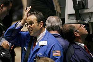 | 交易員們在美國紐約證券交易所的交易大廳里忙碌。由于投資者擔心美國次級抵押貸款市場危機加劇,9日歐美股市全線大幅下挫,其中紐約股市道瓊斯指數狂跌387.18點,跌幅為2.83%。標準普爾500種股票指數下跌2.96%,以技術股為主的納斯達克綜合指數的跌幅為2.16%。當天,倫敦股市《金融時報》100種股票平均價格指數下跌1.92%,法蘭克福股市DAX指數下跌2%,巴黎股市CAC40指數下跌2.17%。本報資料照片 | 據《經濟學家》期刊提供的數據,近來美國商業貸款市場利率相對國債利率的息差已經明顯上升,相比2006年年底翻了約一番。作為資金價格的一個主要指標,息差增大反映出資金供應趨緊、“風險溢價”提升。市場融資成本上升的情況如果成為常態,影響就不僅限于資本市場上借助高杠桿的對沖基金、私募股權基金,還有可能影響消費信貸和企業正常融資需求,進而對整體經濟產生危害。 另外,各種形式的資產證券化操作已經將次貸市場的風險傳播到更廣泛領域中,也擴大了影響面。國際貨幣基金組織的最新數據顯示,目前作為該市場主要證券化產品之一,來自美國發行人的擔保債權憑證(CDO)基本分散在5類金融機構手中,其中包括銀行(31%)、資產管理公司(22%)、對沖基金(10%)、保險公司(19%)和養老基金(18%)。從更廣范圍看,由于主要發達經濟體金融聯系緊密、市場心態趨同,美國次貸市場的影響已經不只限于本土,德國、法國和英國等國部分海外投資基金都受到了較明顯的沖擊。 美國次貸市場問題經年累積,在其背后既有房價走低、市場利率走高因素,也有資金供應方降低信貸門檻、忽視風險管理,需求方過度借貸埋下的惡果。問題不可能很快解決,其影響或將延續。 市場信心的變化造成了近期股市、債市、匯市等各類市場資產價格的較大幅度波動。另外,美國信貸市場層次類別豐富,目前次級抵押貸款市場危機突出表現在住房市場。但是,汽車、教育金、信用卡等其他市場是否存在類似問題?一般市場是否存在類似問題?這些疑慮會進一步加重,并可能借助誘因造成新的市場恐慌。