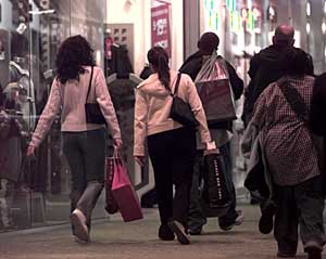 | 圖為幾位美國新澤西州的居民購物后離開商場。分析人士認為,美國次級抵押貸款危機對約占美國國內生產總值2/3的個人消費開支的影響不是很大。本報資料照片 | 美國經濟對樓市依賴度有限