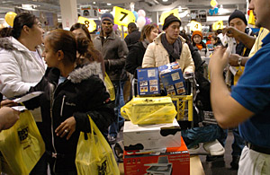 | 美國購物者在紐約市皇后區的一家連鎖店內搶購電器。美國的借貸透支消費文化是次貸危機發生的一個深層次原因。本報資料照片 | 次貸本身風險度高