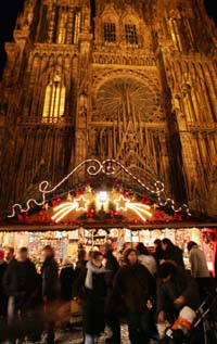 24日,人們在法國斯特拉斯堡的“圣誕市場”上購物參觀。斯特拉斯堡的“圣誕市場”當天開市。它作為法國最大也是最古老的“圣誕市場”,每年都吸引上千人前來購物參觀。