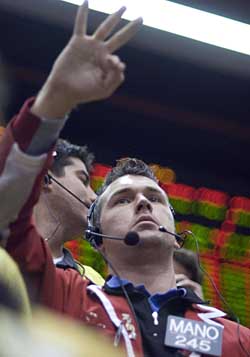 | 11日,美聯儲宣布降息后,交易員在芝加哥商品交易所忙碌。當日,美國聯邦儲備委員會決定,將聯邦基金利率即商業銀行間隔夜拆借利率再降0.25個百分點至4.25%,以應對信貸危機及可能產生的經濟衰退后果。這是自9月份以來美聯儲第三次降息。新華社/路透 | 經濟增速“正在放緩”