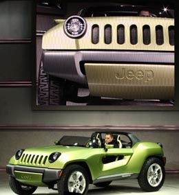 | 克萊斯勒公司展出的吉普Renegade概念車,它采用清潔柴油引擎,車身采用鋁制結構,并使用鋰電池組和電動機作為輔助動力,以獲得更好的燃油經濟性。新華社記者