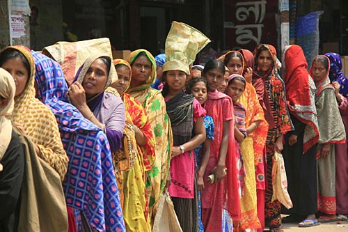 | 在孟加拉國首都達卡,人們在政府開設的平價米店前排隊買米。新華社發(扎曼