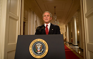 | 圖為24日,美國總統布什在華盛頓白宮發表電視講話后接受媒體拍照。新華社/法新 | 美國總統布什24日發表全國電視講話時,運用強烈的措辭敦促國會盡快通過政府提出的巨額金融救援計劃,他直言“我們的整體經濟正處于危機之中”。 布什當天的電視講話除了向美國公眾解釋這一上世紀30年代美國經濟大蕭條以來最大的救市方案外,更重要的是向國會施壓,敦促其盡快出臺各方達成共識的最終方案。 布什指出,這一計劃有助于政府購入金融機構不良資產,從而增加信貸市場流動性,進而刺激經濟復蘇。他強調,該計劃旨在幫助整個國家,而不是單個公司。 在布什發表電視講話之前,美國兩黨總統候選人奧巴馬和麥凱恩則發表聯合聲明,警告美國民眾正面臨經濟危機時刻。他們強調,目前正是兩黨本著合作精神,以民眾利益為先,齊心協力共渡難關之時。 美國聯邦儲備委員會主席伯南克當天在國會聯合經濟委員會作證時警告,如果政府的金融救援計劃不能得以實施,信貸危機會進一步加劇,企業和消費者都將無法獲得貸款,這將導致美國經濟陷入停頓,其經濟后果將是可怕的。他強調,美國經濟活動看起來已普遍減緩,經濟增長前景的下行風險非常令人關注。他說,對外貿易在今年上半年為美國經濟增長提供了相當多的支持,但在未來幾個季度里,美國的出口對于經濟增長的推動作用可能不會像上半年那樣大。同時,石油以及其他商品價格最近有所回落以及經濟增長步伐放慢,將使通貨膨脹壓力在今年晚些時候以及明年得到緩解。 根據著名政治期貨公司Intrade提供的最新交易結果,投資者認為美國國會最終通過大規模金融救援計劃的幾率達到80%。 政治期貨是與華爾街的期貨市場有著類似運作原理的市場,往往能反映出一個事件發展的走勢或者未來發展的結果。由于民眾是通過投入資金來參與交易,因而政治期貨被認為比普通民調更能反映人們對事件的認知和判斷。 據路透社24日報道,Intrade公司指出,當天市場交易相當活躍,而有關美國政府巨額金融救援計劃的交易是最受關注的。此外,民眾參與最多交易的還包括美國共和黨副總統候選人佩林是否被換掉。 美國財政部發言人布魯克利·麥克勞克林則表示:“我們很有信心在本周通過。” |