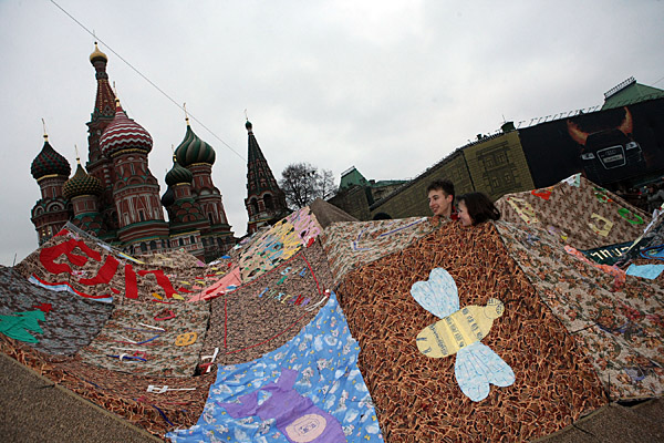 4日,在俄羅斯首都莫斯科克里姆林宮外,來自俄多個地區的青年手舉自己制作的象征民族團結的毯子,參加慶;顒。當日是俄羅斯民族團結日,眾多市民走上街頭,參加各種慶;顒。為了紀念本國軍民1612年將莫斯科從外國武裝占領狀態下解放出來,同時彰顯民族團結的重要性,俄羅斯于2005年設立了這一新節日。