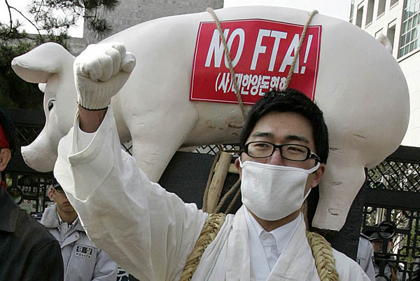 韓農(nóng)民抗議韓國與歐盟自由貿(mào)易協(xié)定談判