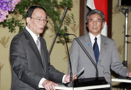 第二次中日經濟高層對話7日在日本東京閉幕。中國國務院副總理王岐山和日本外務大臣中曾根弘文在對話結束后共同會見了記者。雙方一致表示,要牢牢把握中日戰略互惠關系的大方向,加強交流,增進共識,共同推動兩國經貿合作不斷向前發展。