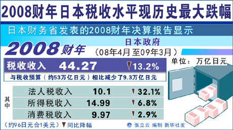 2008財(cái)年日本稅收水平現(xiàn)歷史最大跌幅
