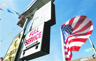 美國紐約的一個加油站拍攝的油價牌。新華社記者劉欣 攝