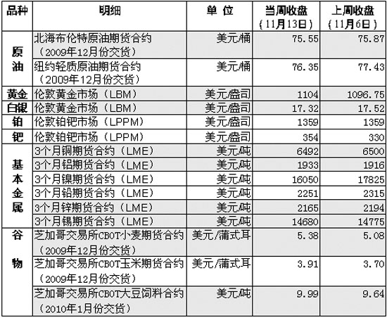當(dāng)周國(guó)際金價(jià)再次刷新歷史紀(jì)錄。倫敦市場(chǎng)金價(jià)12日創(chuàng)下每盎司1123.38美元的歷史新高。紐約市場(chǎng)黃金期貨12月合約11日盤中觸及1119.10美元的歷史新高,并在次日隔夜電子交易中一度上漲至1123.40美元的紀(jì)錄新高。 分析人士指出,美國(guó)經(jīng)濟(jì)低迷造成美元疲軟,衡量美元對(duì)西方主要貨幣比價(jià)的美元指數(shù)在11日夜間曾一度跌至74.855的15個(gè)月來新低,美元匯率下跌提升了投資者買入黃金保值的需求,因此金價(jià)連創(chuàng)新高。只要美聯(lián)儲(chǔ)加息未進(jìn)入倒計(jì)時(shí),黃金有理由在利好基本面的支撐下繼續(xù)維持高位,并仍有上行機(jī)會(huì)。但需要注意的是,鑒于近期金價(jià)上漲主要由大量投機(jī)買盤而非實(shí)物需求推動(dòng),因此金價(jià)有可能出現(xiàn)短期回調(diào)。 受美元匯率波動(dòng)以及投資者對(duì)美國(guó)能源需求恢復(fù)前景表示擔(dān)憂等因素影響,當(dāng)周國(guó)際油價(jià)呈震蕩走勢(shì)。分析人士認(rèn)為,目前紐約市場(chǎng)油價(jià)處于每桶76美元至82美元震蕩區(qū)間的下部,不排除向下突破的可能。埃克森美孚石油公司首席執(zhí)行官13日也指出,當(dāng)前油價(jià)中至少有20美元至25美元的溢價(jià)是由美元貶值造成。 庫(kù)存減少推高了鋁價(jià),雖然倫敦金屬交易所(LME)的鋁庫(kù)存仍處于高位,但已比頂峰時(shí)下降了近10萬噸,反映出市場(chǎng)對(duì)鋁的需求增多。LME其他基本金屬期貨價(jià)格普遍下跌,其中鎳價(jià)跌幅最深,LME鎳庫(kù)存12日升至13.17萬噸,為1995年以來最高。 埃及國(guó)家小麥采購(gòu)機(jī)構(gòu)——埃及通用商品供應(yīng)總局12日買入了29.5萬噸俄羅斯小麥。在基本面利空的情況下,芝加哥市場(chǎng)小麥價(jià)格依然上漲,上漲動(dòng)力來源于技術(shù)性基金買盤。另外,美國(guó)農(nóng)業(yè)部公布的農(nóng)作物生長(zhǎng)進(jìn)度和農(nóng)產(chǎn)品月度供需報(bào)告等,都為玉米價(jià)格走高提供了支撐。