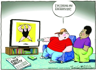 胖孩子:我也是這么練的!(摘自《美國政治漫畫網(wǎng)》)