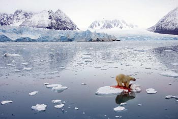 這是2006年拍攝的挪威北部斯瓦爾巴德群島水域一塊浮冰上的北極熊。由于全球氣候變暖,這里的積冰正在加速溶化。新華社發
