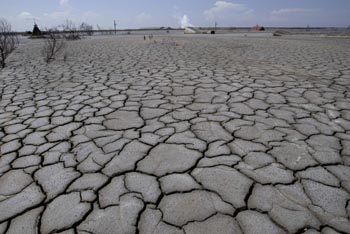 這是2007年5月29日,印度尼西亞東爪哇省的一個村莊附近,土地因干旱而龜裂。新華社發