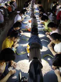 | 工人正在精選珍珠。新華社發 | 業城市,其珍珠產量約占全國總產量五成。2005年,北海市珍珠養殖面積達50010多畝,養殖場數百個,從業人員兩萬多人,年放養插核育貝6500多萬只,年產珍珠7006公斤;珍珠及副產品綜合加工年產值達3.5億元以上。