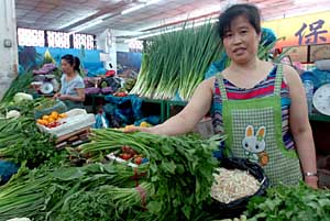 | 長春市永昌綜合市場賣菜的徐艷杰說:“這兩天蔬菜價格降了一點,但還是比往年貴了不少。”新華社記者 蔣林