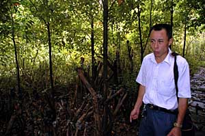 三峽珍稀植物園創(chuàng)建者向秀發(fā)在去年旱死的一片野生枸杞樹前痛心不已。這個(gè)植物園自2002年建設(shè)以來,就因體制不順、無主管部門而缺乏資金來源。今年6月,已負(fù)債30萬元的向秀發(fā)無力支撐,被迫關(guān)閉植物園,園內(nèi)珍稀植物面臨各種災(zāi)害威脅。本報(bào)記者