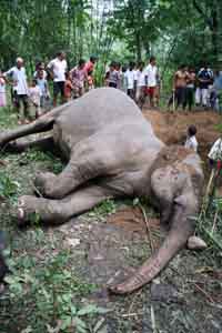 在尼泊爾東部村莊巴姆當吉,人們站在被獵殺的母象尸體旁。新華社/法新 | 有人驚奇地發現:牙材、大貓、西角、有機海洋寶石等模糊的名詞和野生大象、老虎、犀牛的圖片一同出現在某“網店”。 隨著互聯網產業迅速發展和網絡貿易快速普及,野生動物及其制品開始被不法分子搬上“網店”,人們熟識的“大老虎”“小野象”被“網售”。解救行動隨之展開。