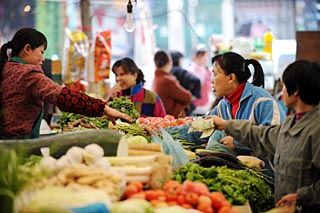 | 3月11日,市民在合肥一家菜市場購買蔬菜。新華社記者 陳曄華