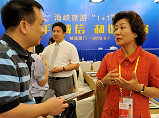 攝 | 中共中央臺灣工作辦公室、國務院臺灣事務辦公室主任王毅7日受權宣布促進兩岸交往的五項新舉措。其中包括,凡持有效往來臺灣的通行證及簽注的大陸居民,今后可以經金門、馬祖、澎湖往來大陸與臺灣本島;首批開放赴臺旅游的大陸13個省市居民,今后可以赴金馬澎旅游,并經金馬澎赴臺灣本島旅游。 “這意味著,一個跨越海峽的兩岸旅游合作區已經初步形成。”正在此間參加第四屆海峽旅游博覽會圓桌會議海峽兩岸的業界人士,得知這一消息后歡欣鼓舞,并隨即熱烈討論著手規劃全面推進兩岸旅游合作的新舉措。