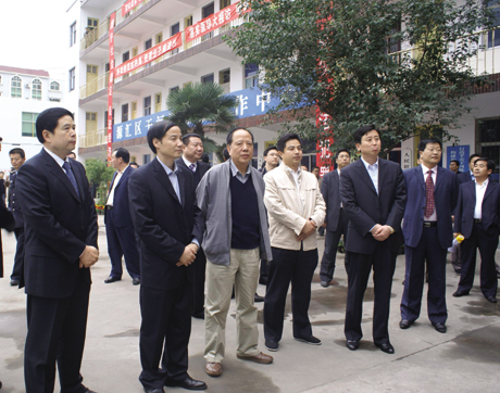 漯河市委書記靳克文(左一)陪同中央綜治委領(lǐng)導(dǎo)檢查驗(yàn)收綜治工作。 |