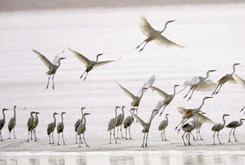 張掖市高臺縣境內的候鳥。本報記者韓傳 號 攝 |